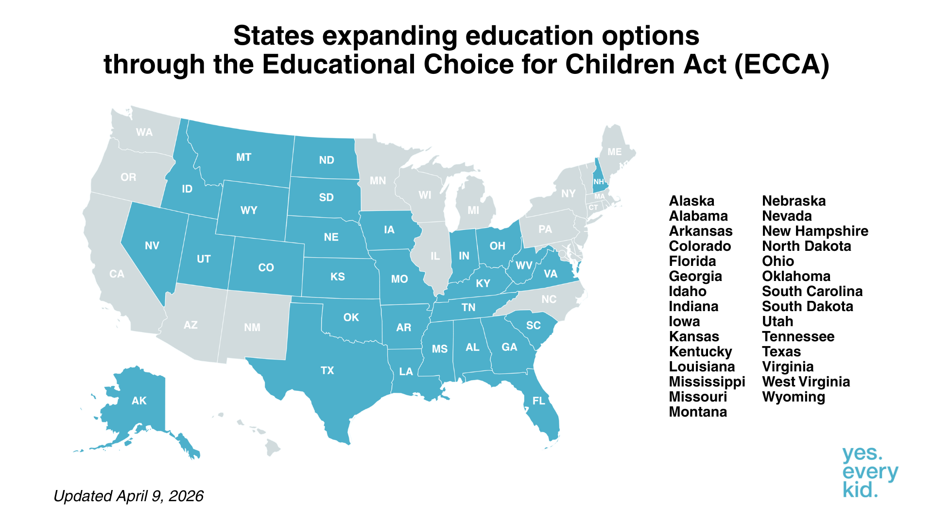 As more states add their voices, this page will continue to reflect the growing momentum behind ECCA and the leaders committed to empowering kids through expanded educational choice.